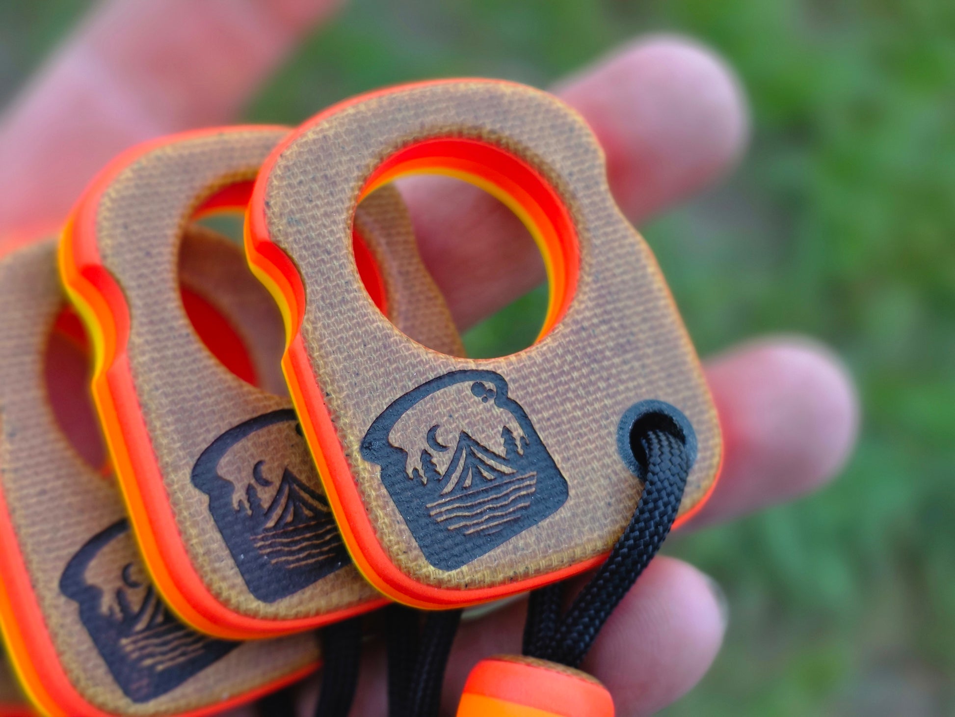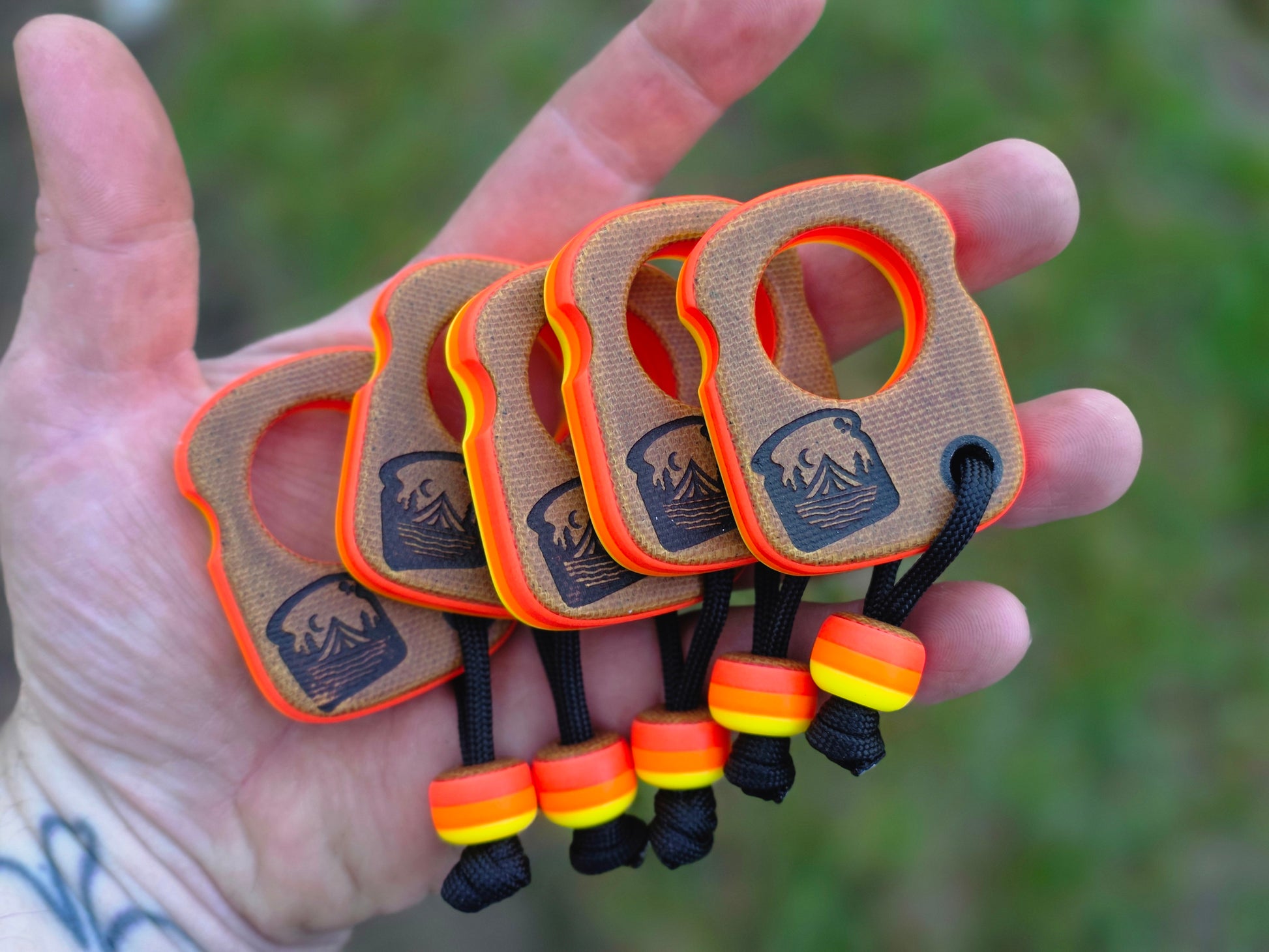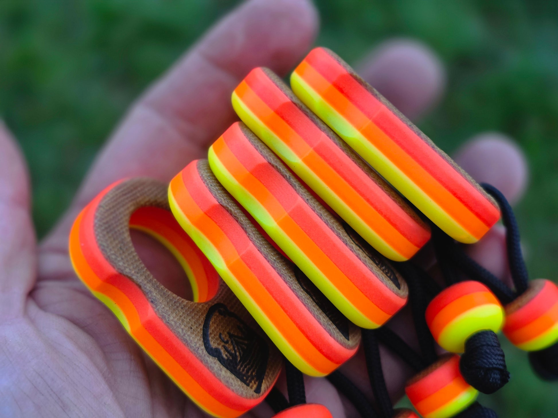 Made with natural canvas micarta and homemade layered glow resin (red, orange, and yellow)
